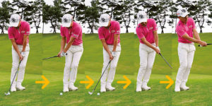 この画像は、アプローチです。胸、両肩がパターと同じように動いてます。ただ違うのは、下半身が、少し回転しているだけです。