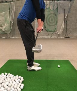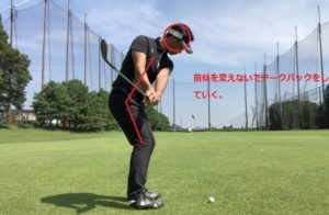 この画像のようにしてしまうと身体の動きがシーソーになりダフリ、トップのミスが出やすくなります。注意しましょう。