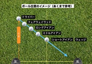 ドライバーからサンドウェッジのボールの位置は、どうするのがよいか、説明していきます。