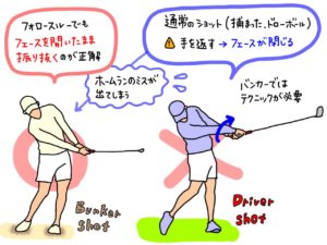 グリーン周りのバンカーショットは、手首の使い方が重要になります。正しく使わないと上手く脱出するのが難しくなります。手首は返すのではなく、動かす、のイメージが大切!