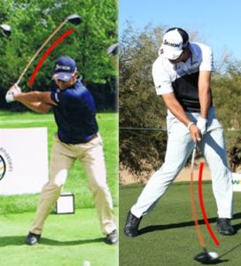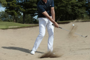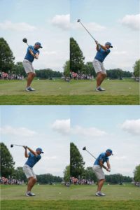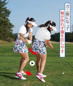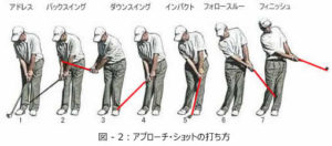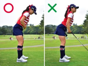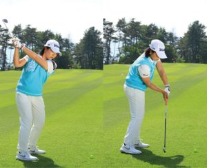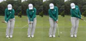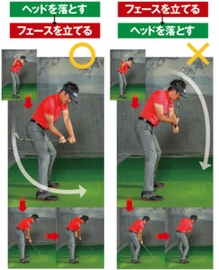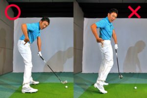 この画像のようにインパクトが終るまでは、下を向いたままを意識しましょう。