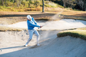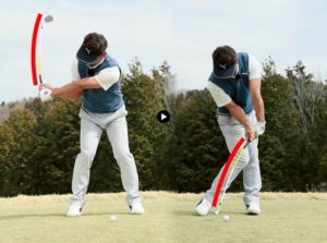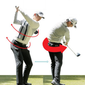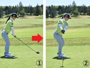 この画像のようにインパクトが終るまでは、下を向いたままを意識しましょう。