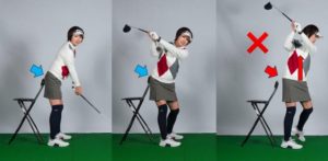 上の画像は、理想です。バックストロークで手の位置が右足の内側位でフォローで左足の外側位まで動いています。そうするとおのずとフォローが長くなりスムーズにストロークができるのです。