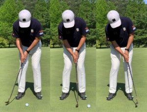 バックストロークよりもフォローを長くするコツは、ストロークをしながらヘッドを動かすのではなく、自分の手の位置をここからここまでというように動かすイメージが良いも思います。なぜなら、ヘッドをみながら動かすと手首が動きやすくなりフェースの向きも安定せず、スムーズにストロークができなくなり、特にショートパットを外しやすくなるからです。