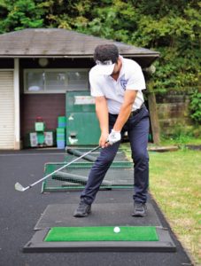 この画像は先ほどと同じようにダウンスイングしていますが、左腕が胸にくっついてはいません。身体の回転と同時に腕もついてきてます。理想的です。こうなるとしっかりボールがつかまり、スライスには、なりにくいと思います。このようにするコツは、トップからダウンスイングに入る時に間をつくることです!そうするとダウンスイングで身体の開きをおさえることができるようになると思いますので是非ご参考にして下さい。