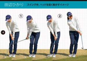 上の画像が正しいです。上の画像の左から2番目の画像が正しいテークバックです。何が言いたいかというとクラブヘッドを持ち上げて、手の位置は、あまり動いていません。(リストコックを使って上げています。)